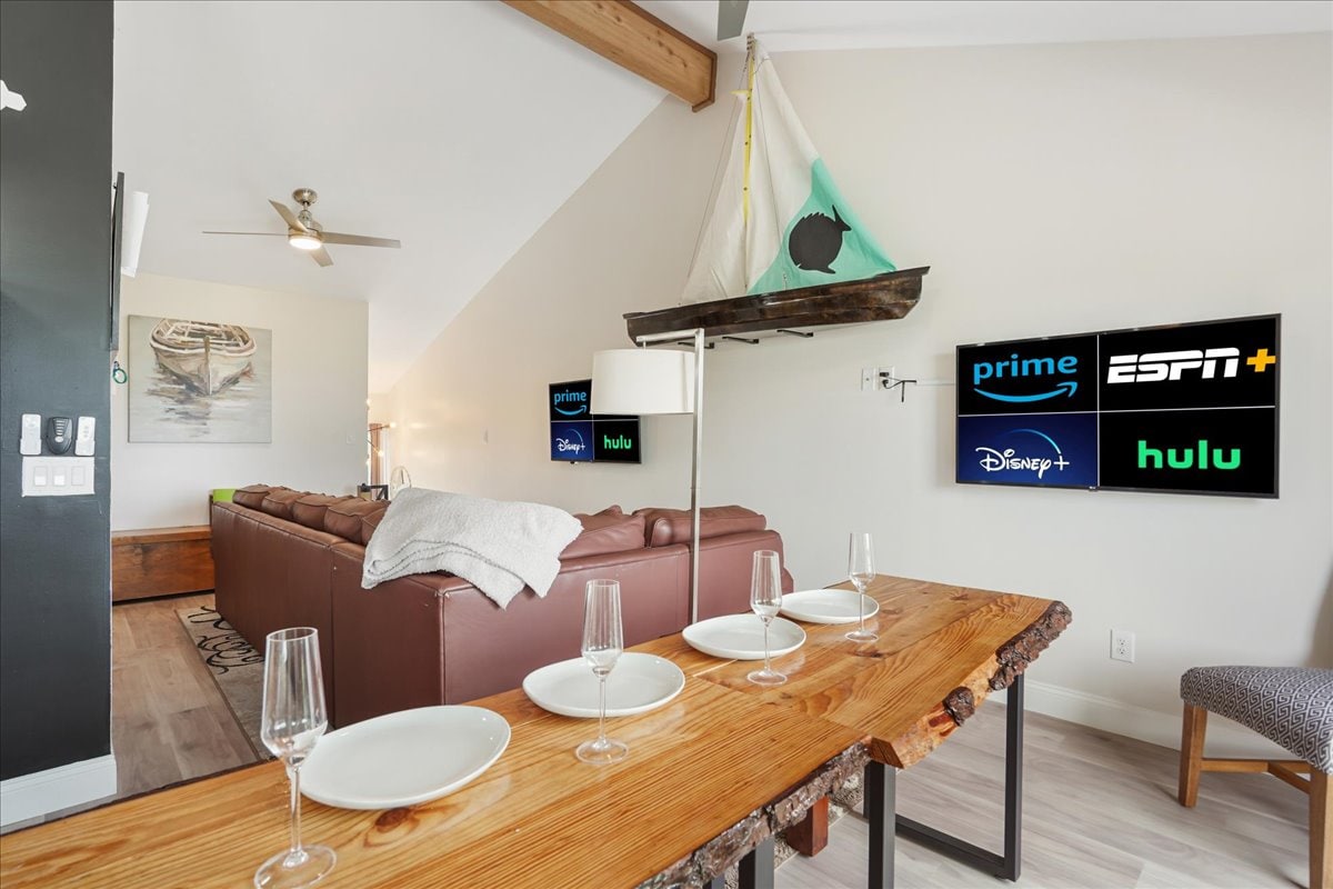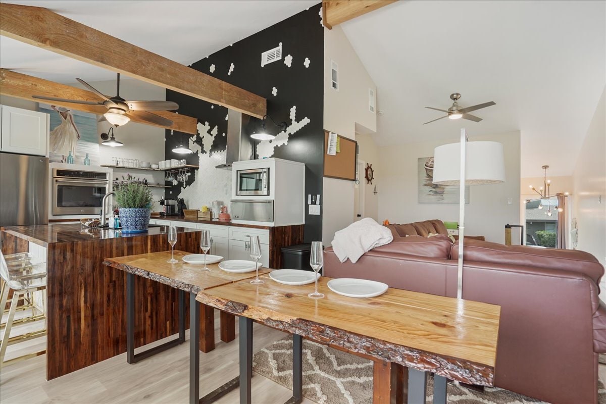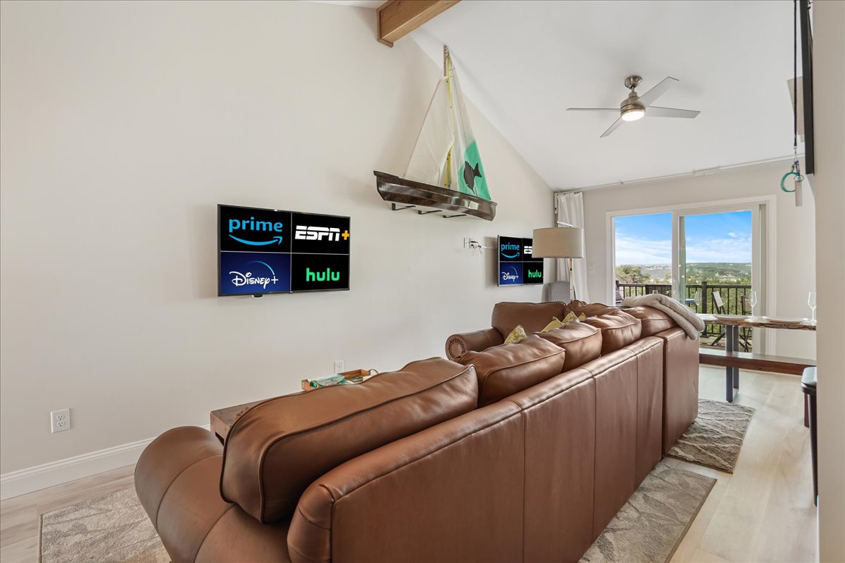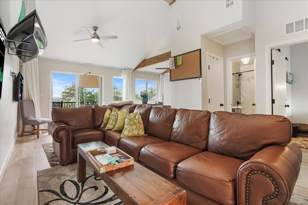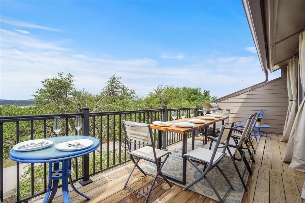 Lago VistaStylish multi-level townhome ideal for group stays. Two bedrooms and two baths—one on each floor. Two additional bedrooms remain locked. Kitchen and living space are on the top floor to maximize views. Enjoy access to laundry, upper deck, and a private 60-acre lake park, plus full use of all community amenities with your reservation.